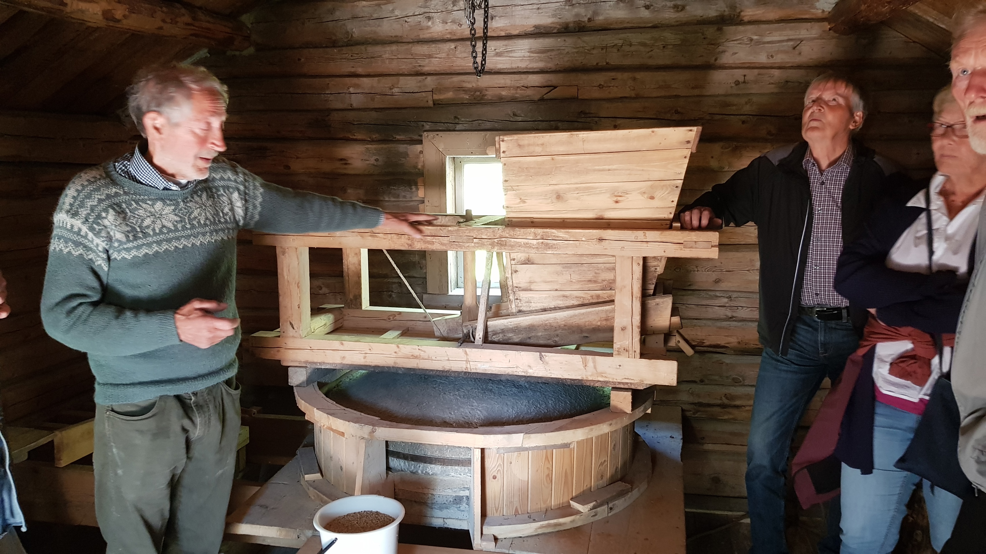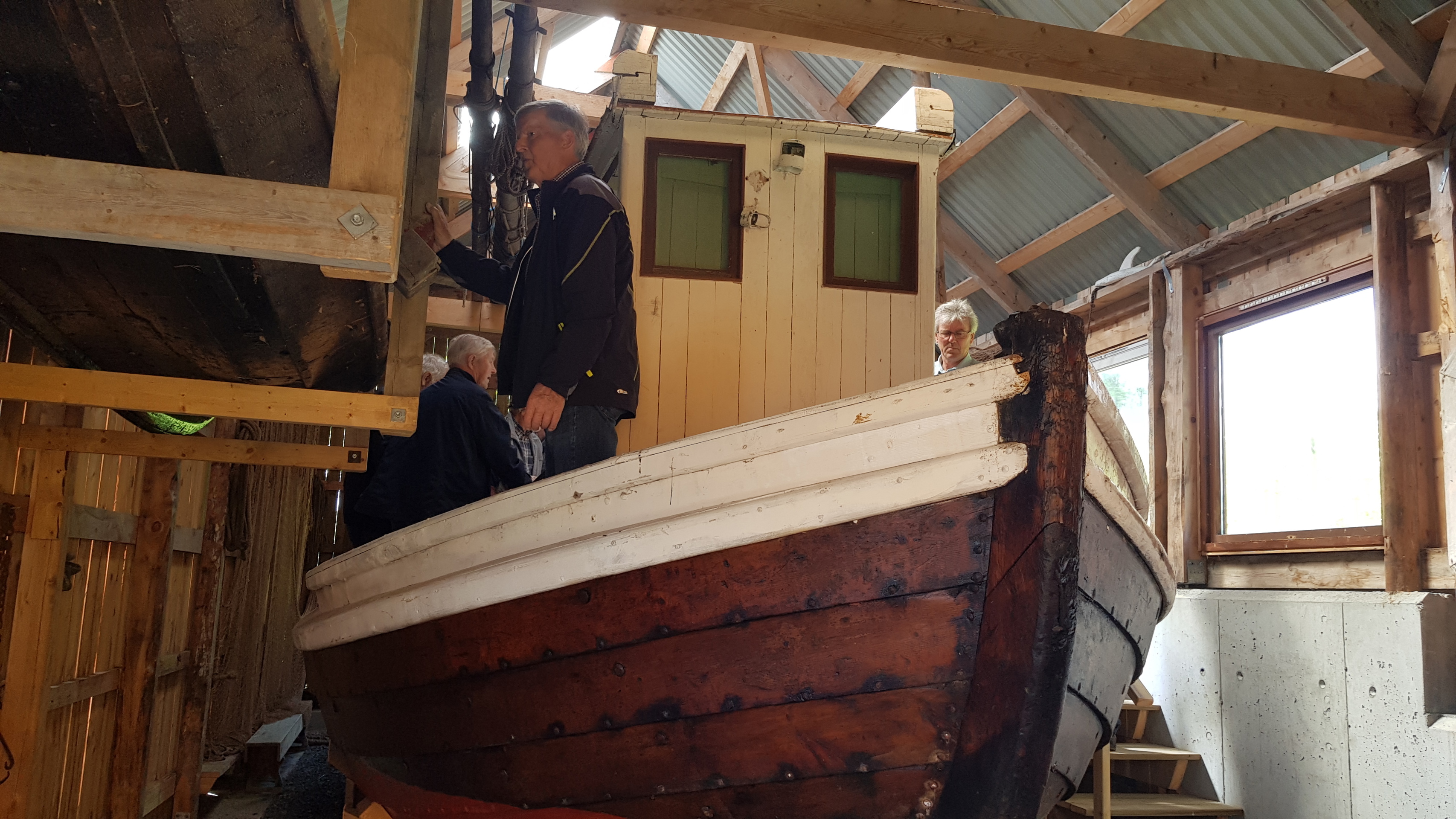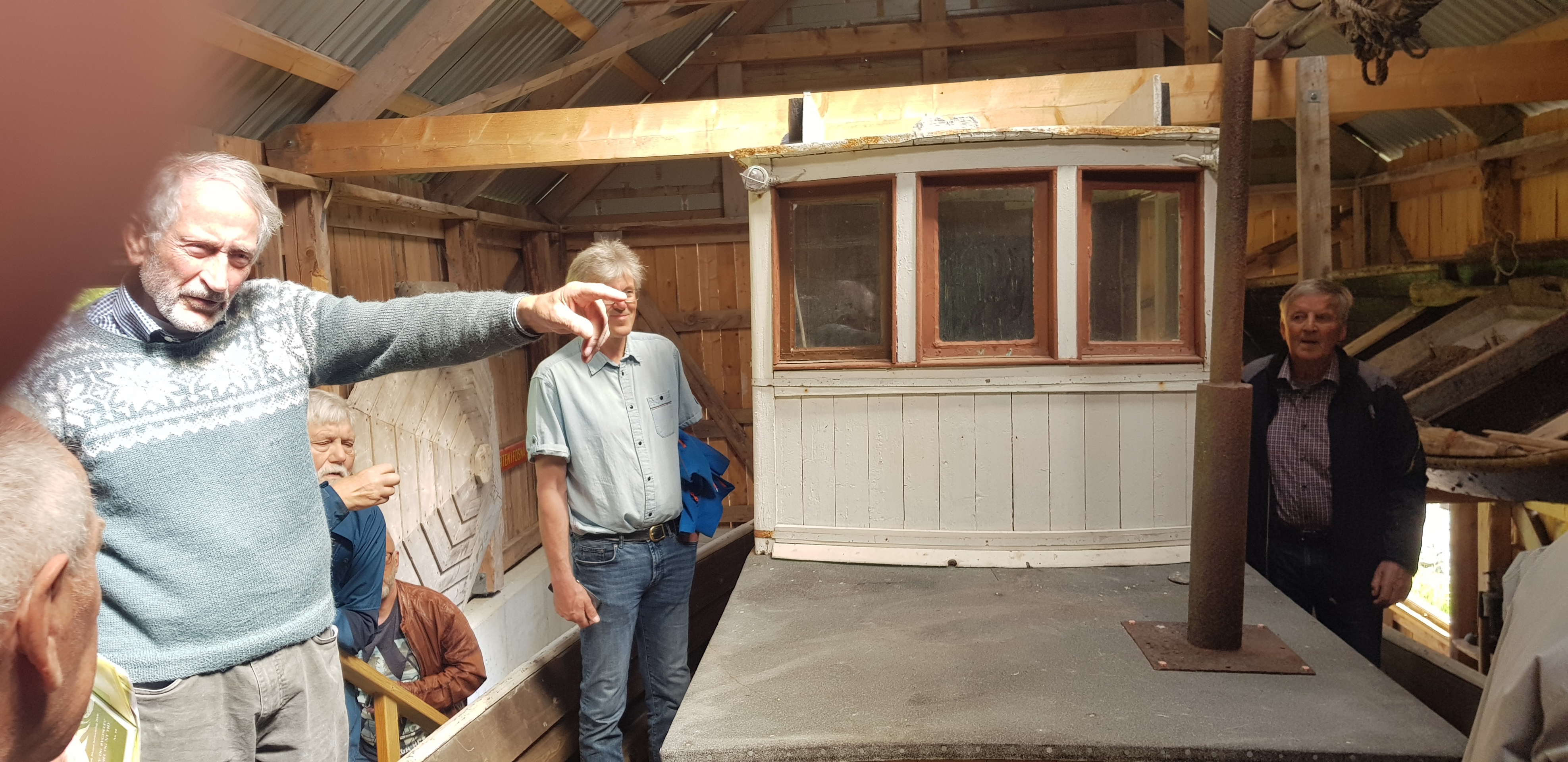 Lørdag 11. juni inviterte Skaun historielag sine medlemmer på tur til Bjugn Bygdatun Mølnargården. Vi ble møtt med strålende sommervær, samt trivelig og kunnskapsrikt vertskap. ☀️☀️ Hovedattraksjonen var børsabåten Falken, som ble bygd 1945-47 i Eggkleiva. Den ble kjøpt og brukt av Arne Kvernstad på Garten i Ørland. Motoren var en Heimdal på 11hk. Senere ble det satt inn en bilmotor som nå er tatt ut. Bjugn Bygdatun kjøpte båten i 1989. Den ble da pusset og satt på land. Børsabåtene som holdt til på Garten ble brukt til kystfiske rundt munningen av Trondheimsfjoreden. Fangsten ble levert til føringsbåten "Gartingen" og fraktet til Ravnkloa i Trondheim. (Du kan lese mer om børsabåten i årbok nr 10 «Næringsliv og bygdeliv i gammel og ny tid») 📖 Vi fikk også omvisning og demonstrasjon av mølla, der vi fikk malt vårt eget mel. Reidar var en proff vie-binder som ga oss et kurs og til slutt fikk vi en omvisning i et imponerende formidlingssenter. Et virkelig flott bygdamuseum med formidling i fokus. Takk til alle som ble med oss på denne fine dagsturen!